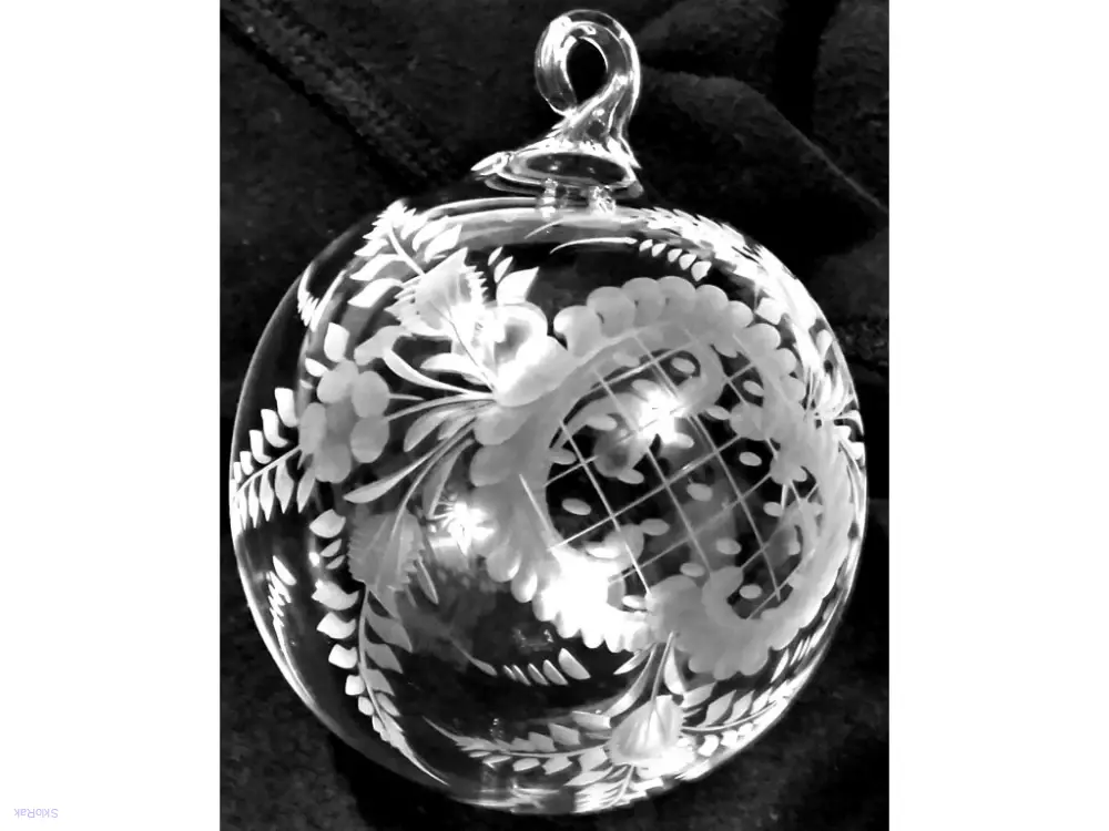 Ručně rytá skleněná koule.