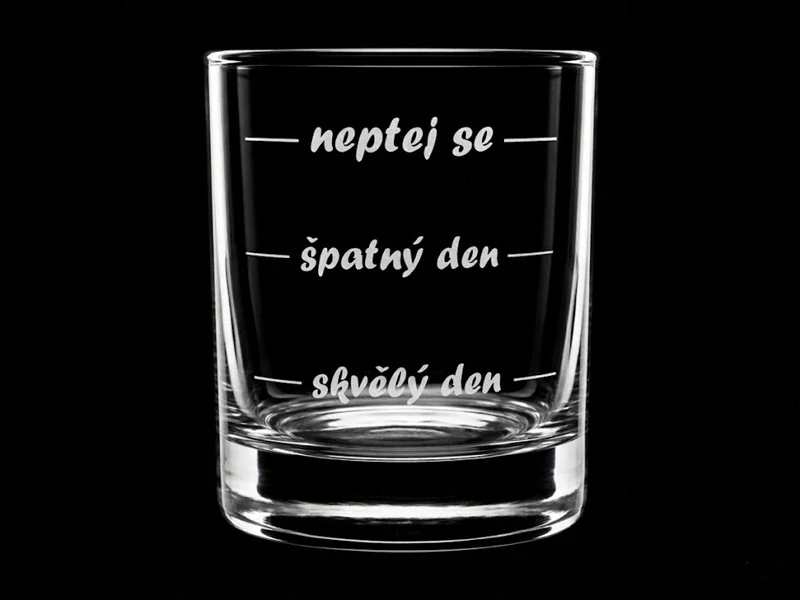 Pískované sklenice na whisky s textem / Dobrý den, ...