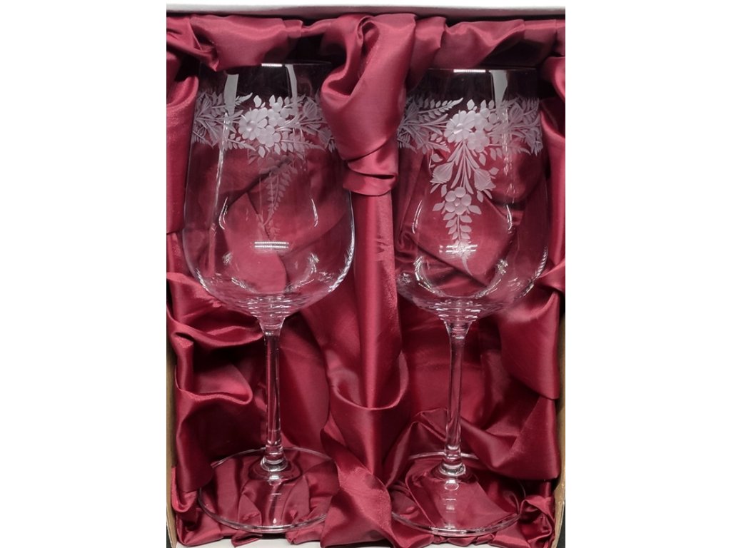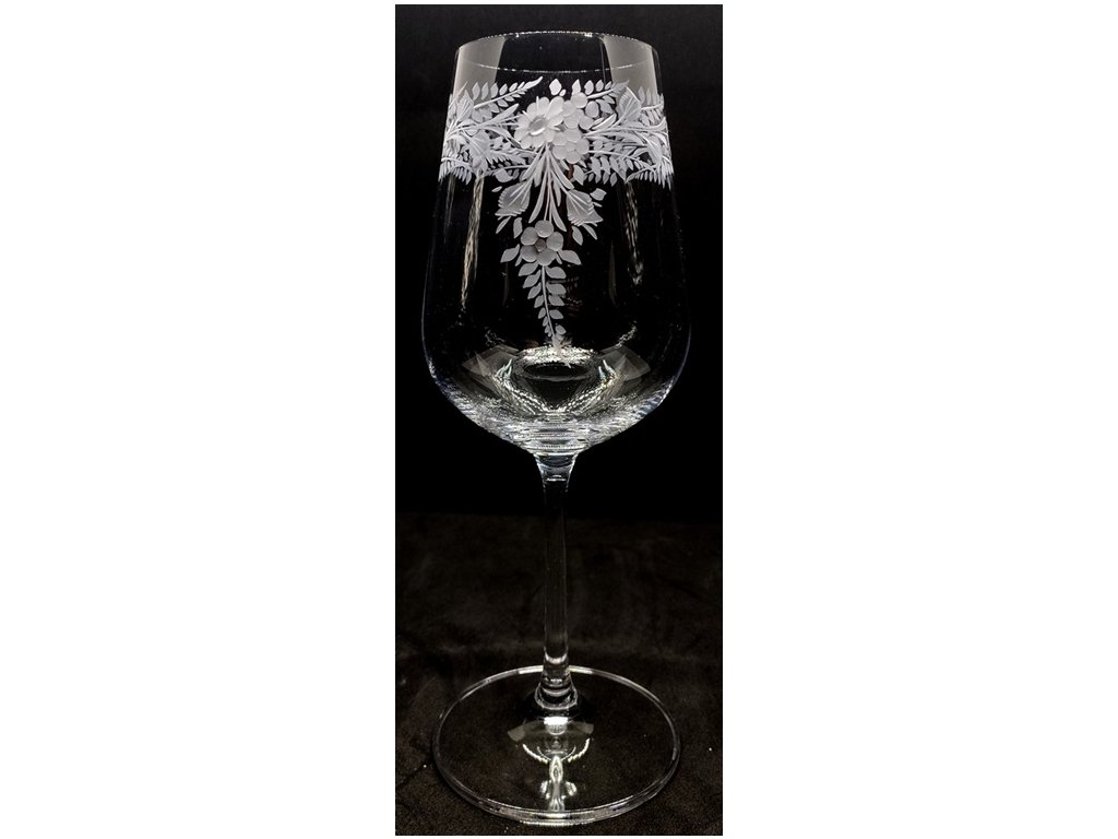Čiré sklenice pro dva s rytým dekorem KOPRETINY II, sklenice jsou české výroby.